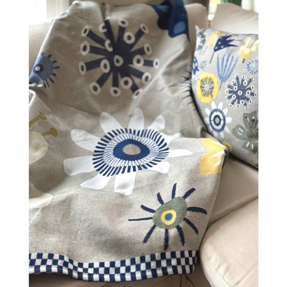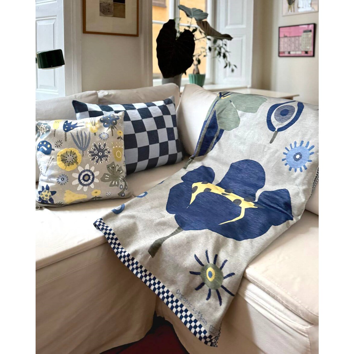 Blanket made from organic cotton with a flower pattern. Perfect for keeping you warm on the sofa or in bed.
