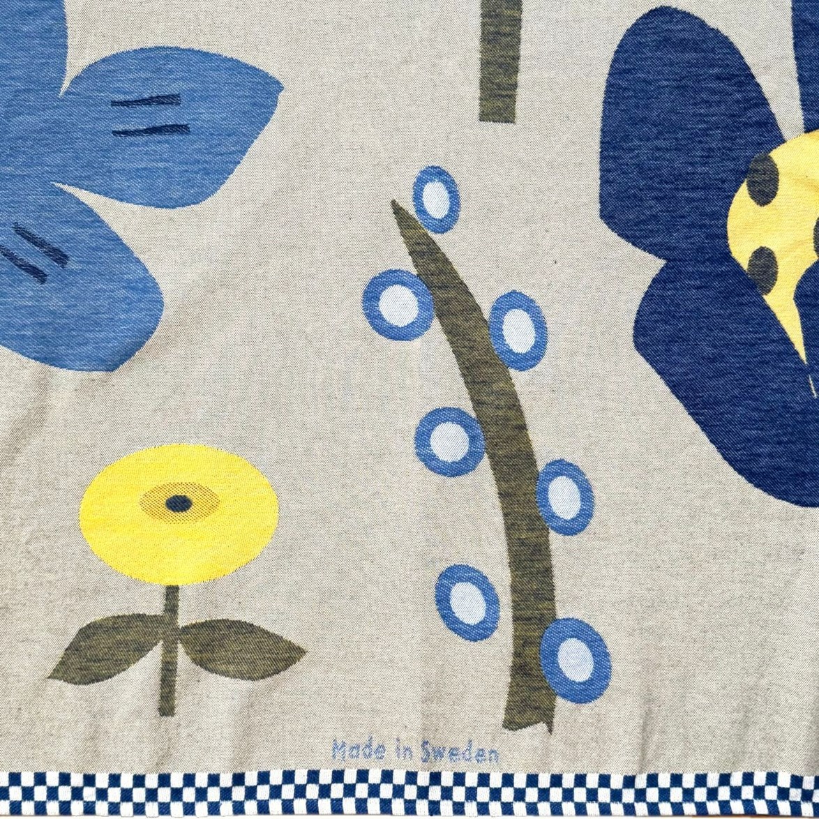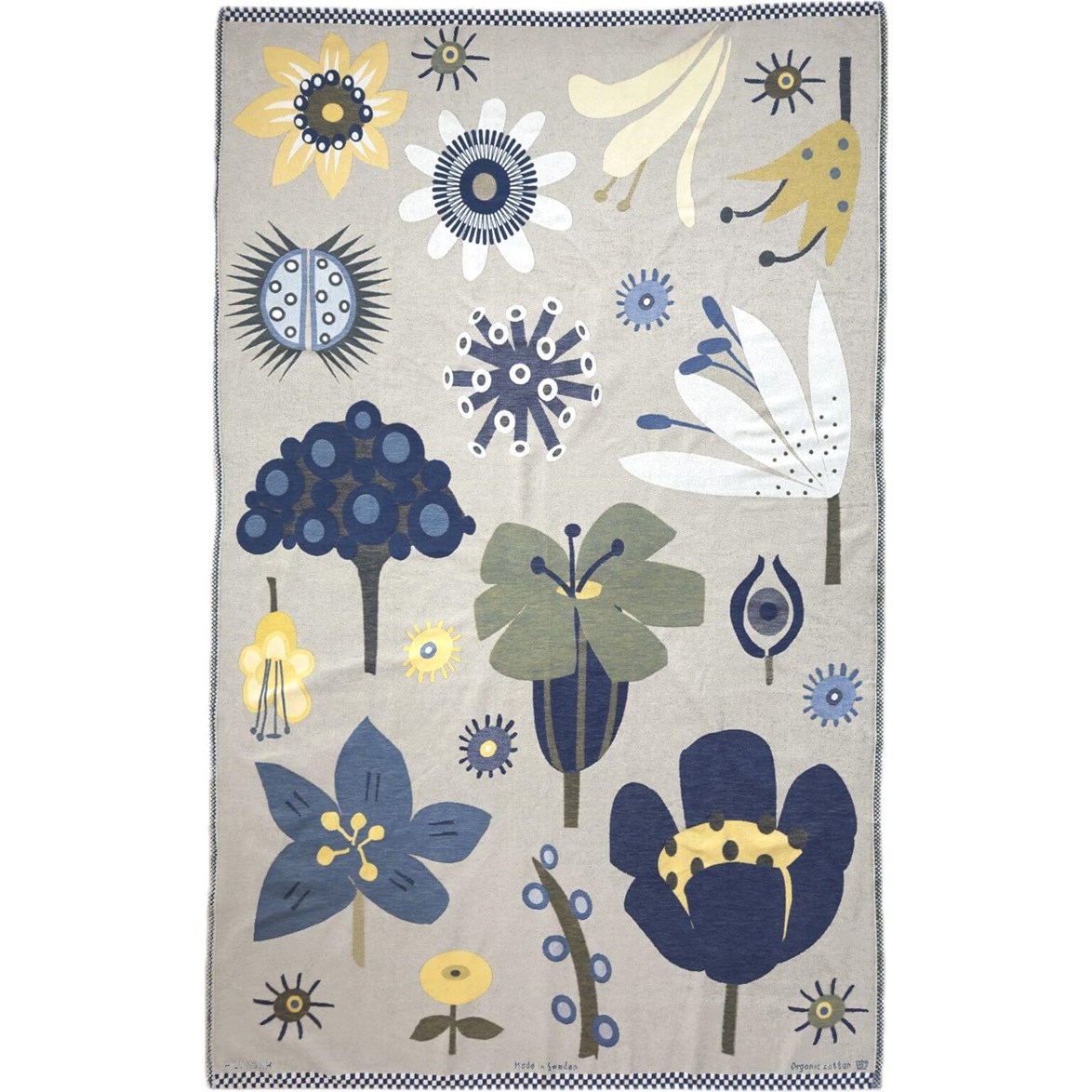 The pattern “Flowers” is a swarm of unique and sometimes slightly odd flowers in different colors, and it was first woven in 2000. I was inspired by flowers from flower shops as well as by visits to the Botanic Garden in Stockholm, Sweden. It's one of our most popular patterns.